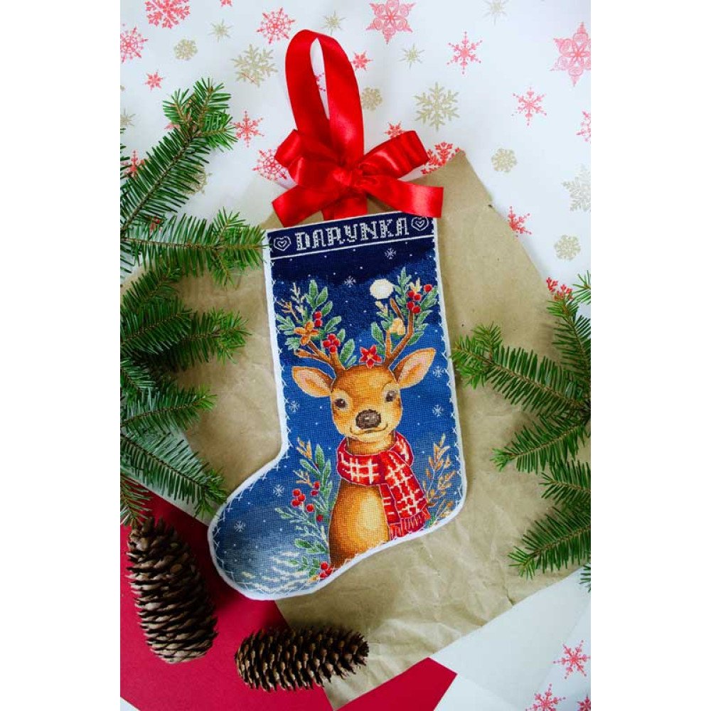 Набір подушка для вишивання хрестиком Абріс Арт АНН-002 Помічник Санти-комплектується канвою білого кольору вісімнадцятого каунту, якісними яскравими нитками, фетром білого кольору товщиною 3 мм, тканиною (дублерин) білого кольору для ущильнення вишивки, декоративною стрічкою червоного кольору. Різдвяний чобіток який майстриня вишила хрестиком, буде гарною прикрасою для святкування різдва. Схема вишивки виконана з надзвичайною увагою до деталей, а червоний бант надасть чобітку святкового шарму. Набір ідеально підійде як для подарунку так і для декорування приміщень.