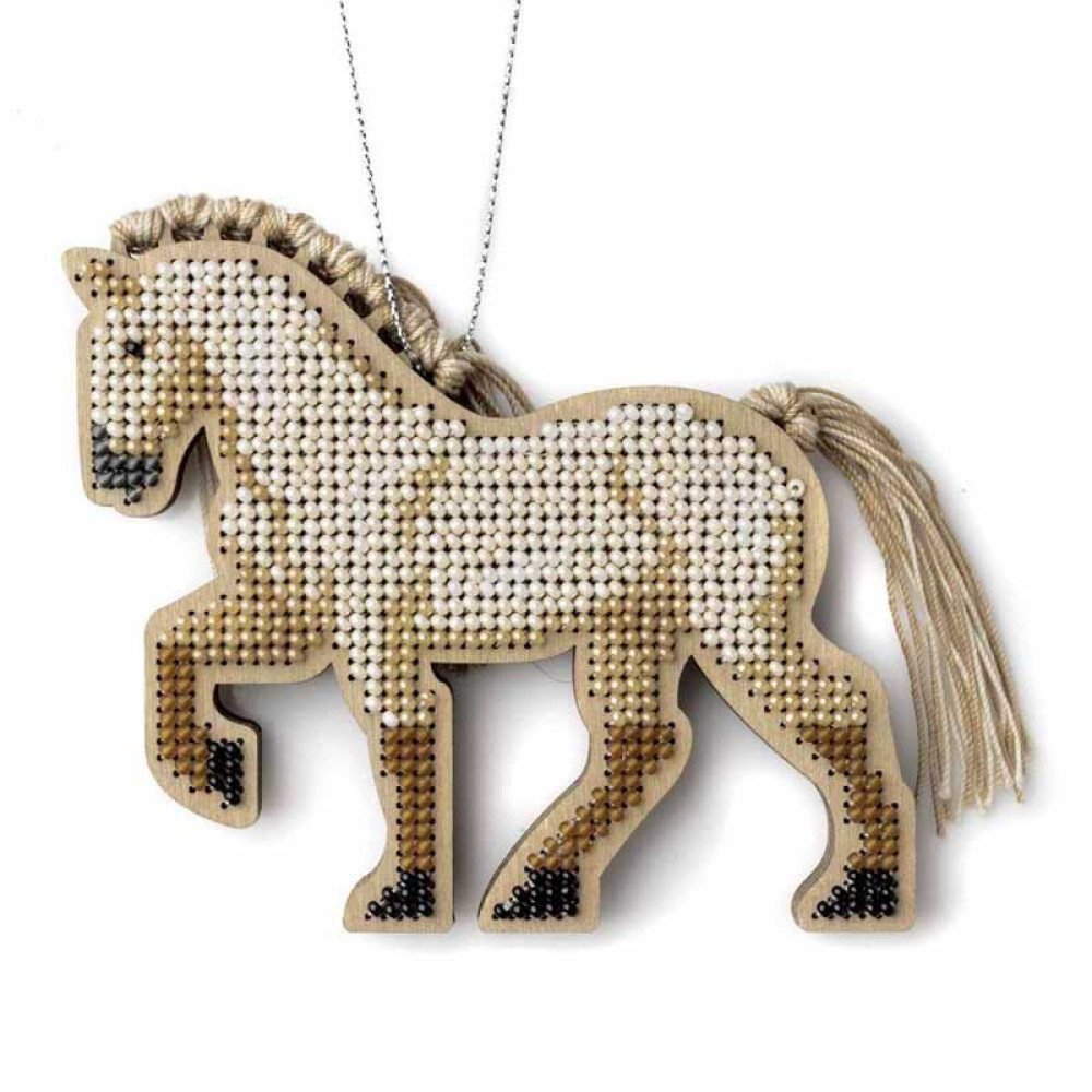 Фото 2 Набір для вишивки бісером по дереву 'Кремовий жеребець' Wonderland Crafts FLK-595 Ялинкова прикраса
