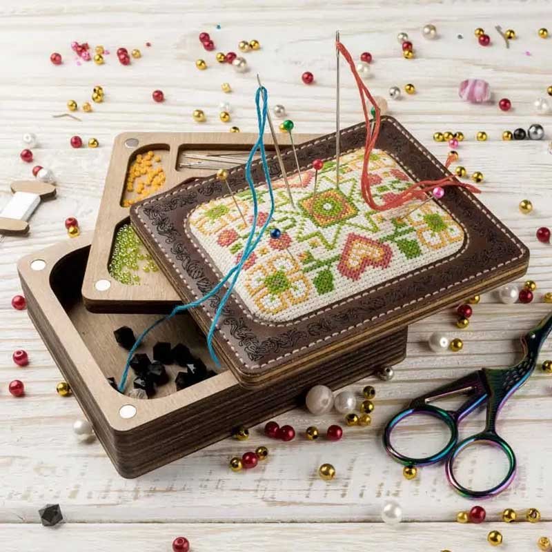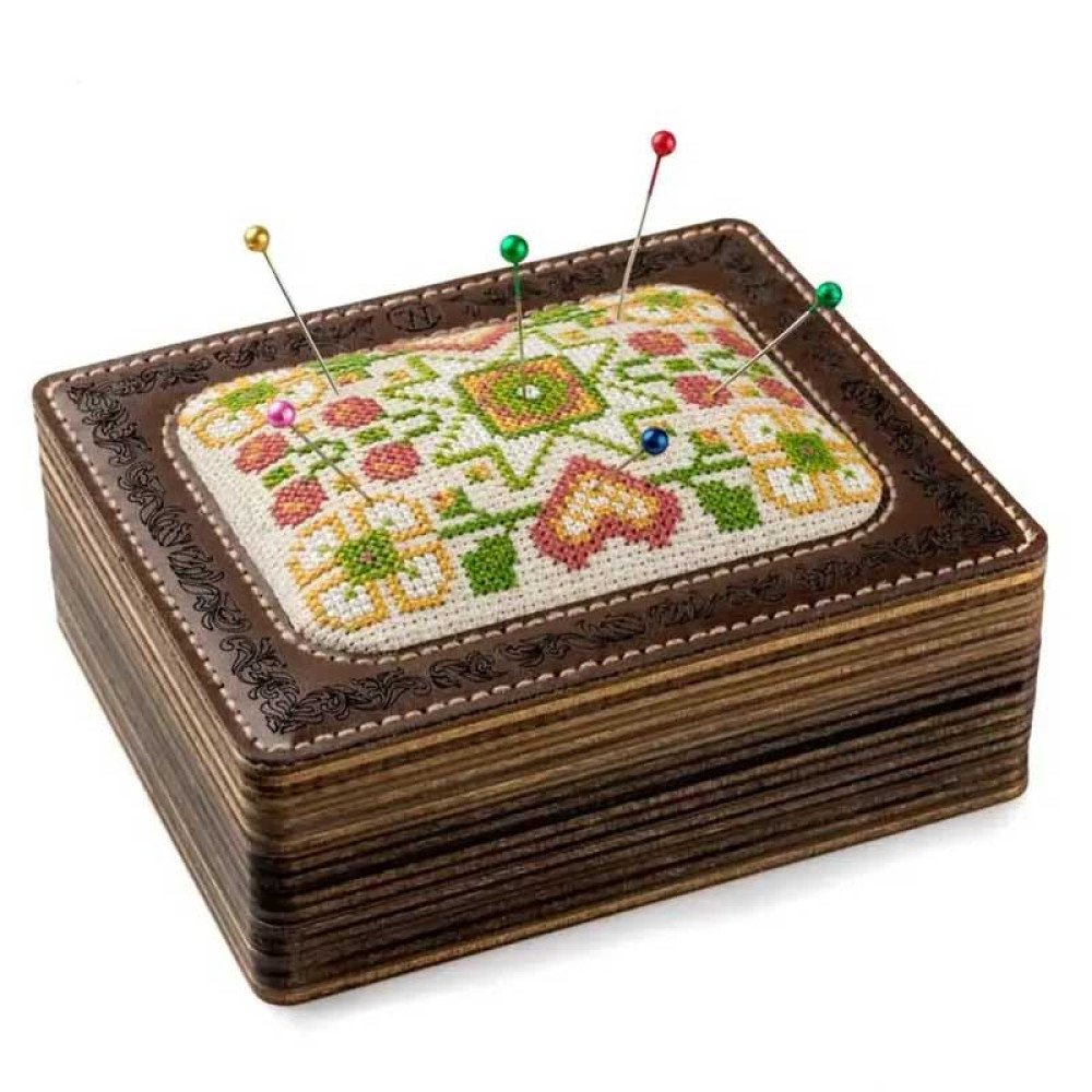 In the online store of accessories for needlework you have an extraordinary opportunity to buy "Kit for creating a pin cushion FairyLand FLTL-075" In the centuries that have passed since the invention of the needle, people have come up with a large number of varieties of needles. Therefore, the company's specialists FairyLand decided not to forget the old traditions and developed a series of FLTL extraordinary shins that will delight true fans of handmade.The FLTL series of needle bed kits are complete with everything you need to embroider and assemble a needle bed from artificial leather: wooden box, faux leather blank, plywood blanks (3 pcs), Zweigart canvas (44% cotton, 39% viscose, 17% linen), embroidery needle, mouline thread (100% cotton), stitching thread details, synthetic winterizer, the instruction and the scheme of an embroidery of a thread, the instruction on assembly of a product.