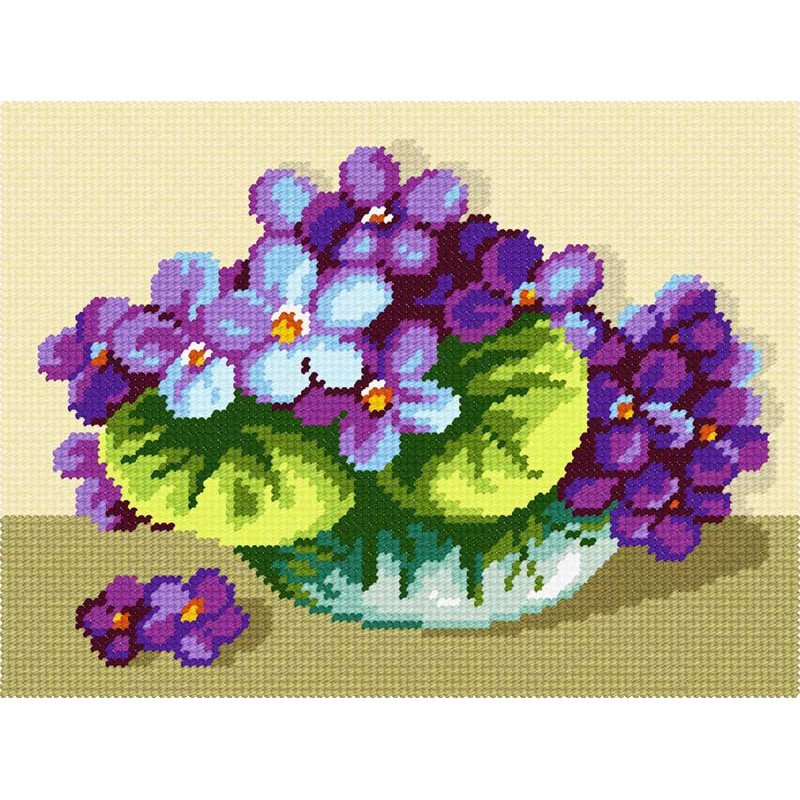 Characteristics of the set: Kit for embroidery yarn on canvas with a pattern Quick Tapestry TH-43 Bouquet of violets