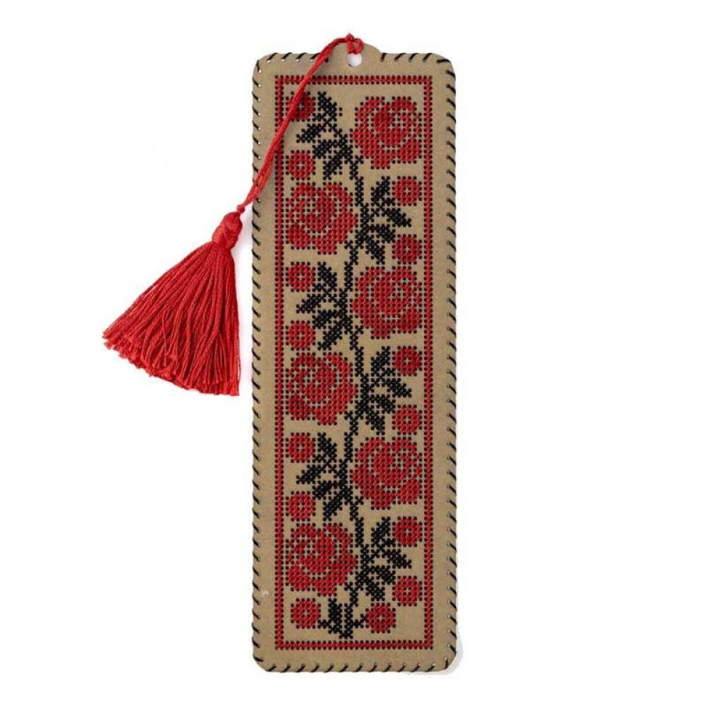 Craft Cardboard Embroidery Kit Wonderland Crafts FLZ-003 Bookmark - Roses - unique set for embroidery with threads bookmarks for books on durable kraft cardboard. FLZ series sets are complete with everything you need: two blanks made of perforated cardboard, a template for creating decorative tassels, floss (100% cotton), a floss needle, instructions (Ukrainian, English) and a color scheme for embroidery. This bookmark combines the beauty of handmade work and practicality of use: it is convenient to use it yourself and is very pleasant to give to loved ones. Embroidery sets of this series are suitable for both those who are just starting to embroider and for experienced craftsmen - this is a simple but inspiring work. With embroidered bookmarks from the Ukrainian manufacturer Wonderland Crafts®, your books will have a special charm, and the process of embroidering them will give a lot of positive emotions.