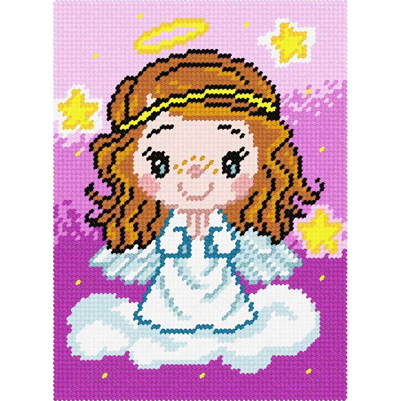 Фото 1. Набір для вишивання пряжею по канві з рисунком Quick Tapestry TD-32 Янголятко-дівчинка.