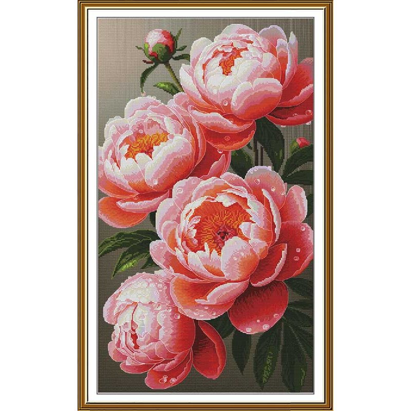Характеристики: Набор для вышивки нитками на канве с фоновым изображением Новая Слобода СР6301 Пышные пионы