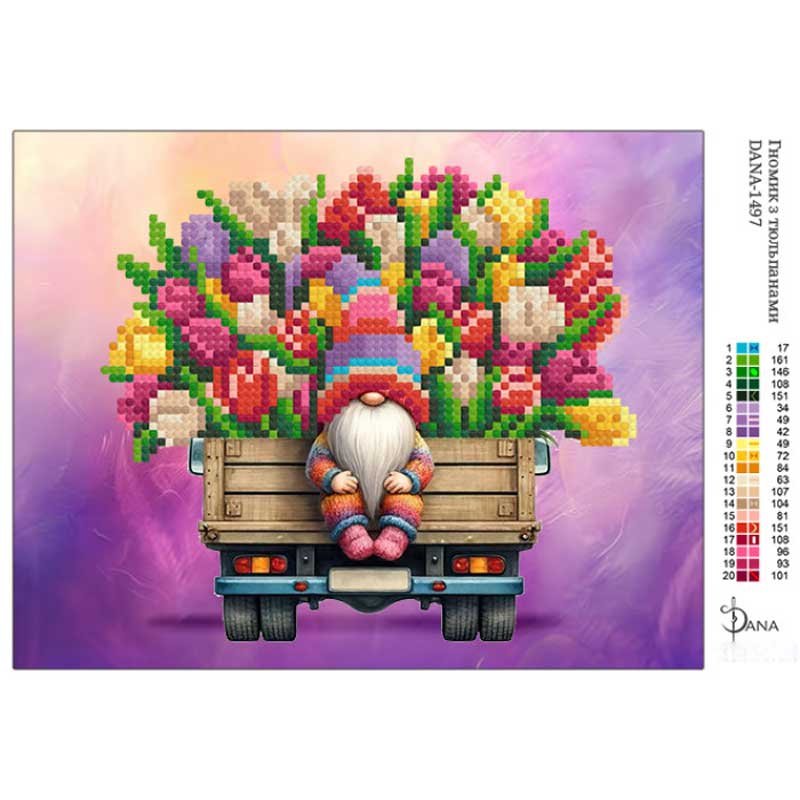 Комплектация: Вышивка бисером схемы ДАНА-1497 Гномик с тюльпанами