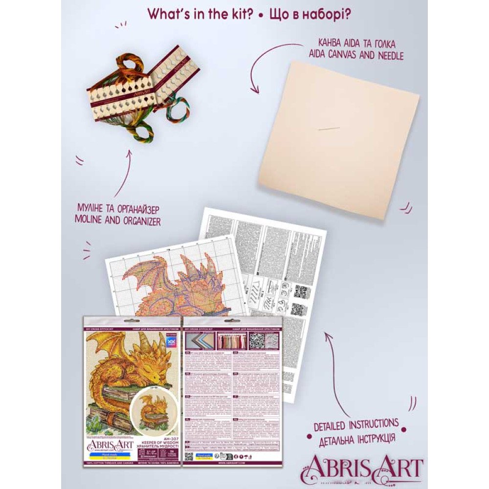 Серед великої кількості наборів для вишивання хрестиком представлених в катлогах інтернет магазину вишивки та рукоділля Берегиня, рекомендуємо переглянути та купити "Набір для вишивки хрестиком Абріс Арт АН-307 Хранитель мудрості" від провідного виробника наборів для рукоділля української компанії Абріс Арт. Набори для вишивки нитками серії АН комплектуються високоякісною німецькою канвою Цвайгарт Аїда, муліне 100% бавовна в зручному для зберігання органайзере, кольоровою символьною схемою і докладною інструкцією. В результаті вишивання набора Ви отримаєте вишиту картину, що прикрасить дім та стане вашим особистим витвором мистецтва. Додатково: декоративна металізована нитка сріблястого кольору. Для більшої зручності Абріс Арт почав комплектувати нові набори для вишивки хрестиком електронними схемами в форматі Сross Stitch Saga. Для того, щоб скористатися електронною схемою необхідно сканувати QR-код який надруковано в інструкції до набору та завантажити схему у форматі Saga (в окремих випадках необхідно встановити VPN). Схему вишивки відкриваєте в мобільному додатку Сross Stitch Saga (програмне забезпечення купується окремо) та вишиваєте із задоволенням.